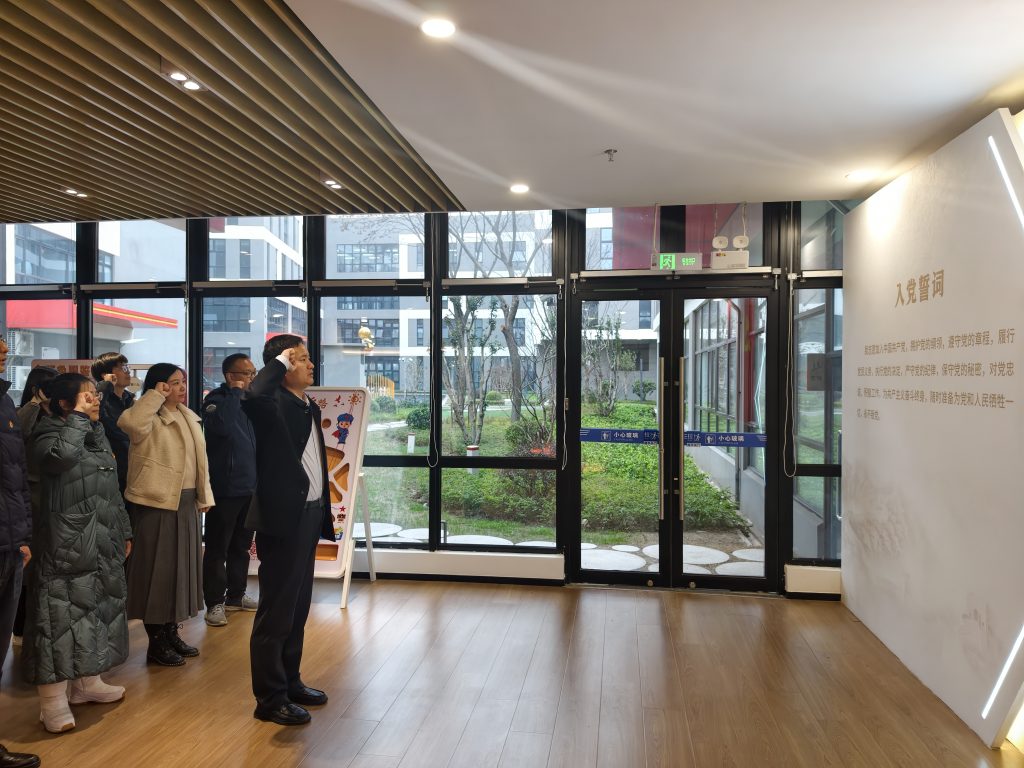 随后,在庄严肃穆的氛围中,全体党员面向党旗庄严列队,高举右拳重温入党誓词。铿锵有力的誓言回荡在活动现场,既是对党的忠诚承诺,也是对初心使命的再次叩问,有效强化了党员的身份认同与责任担当,进一步凝聚了为党的事业奋斗终身的坚定信念。